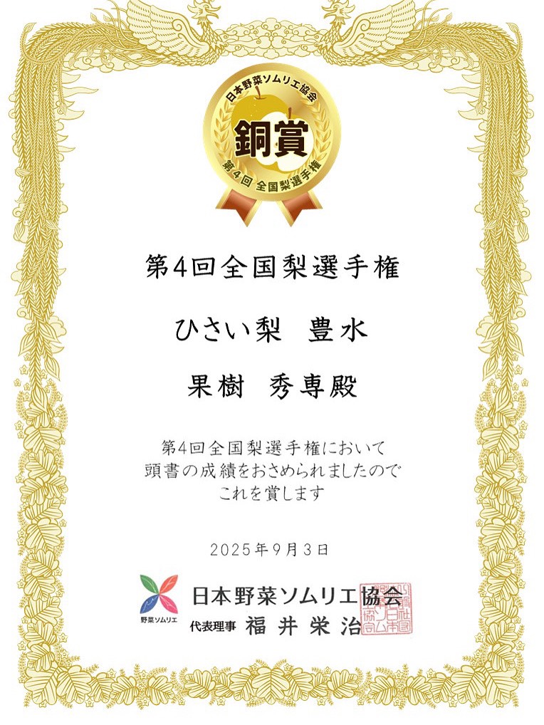 三重県の品評会でも入賞させてもらい今年も品質に自信をもってお客さんに梨を販売できました。