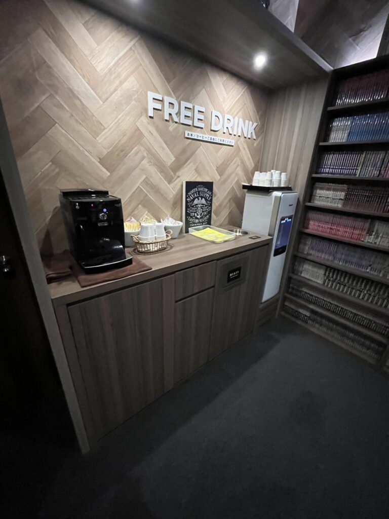コーヒーや水がフリーで飲めます。