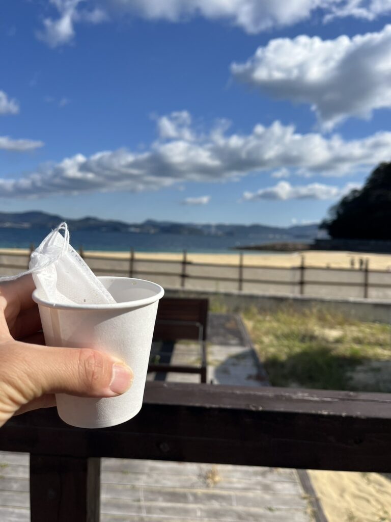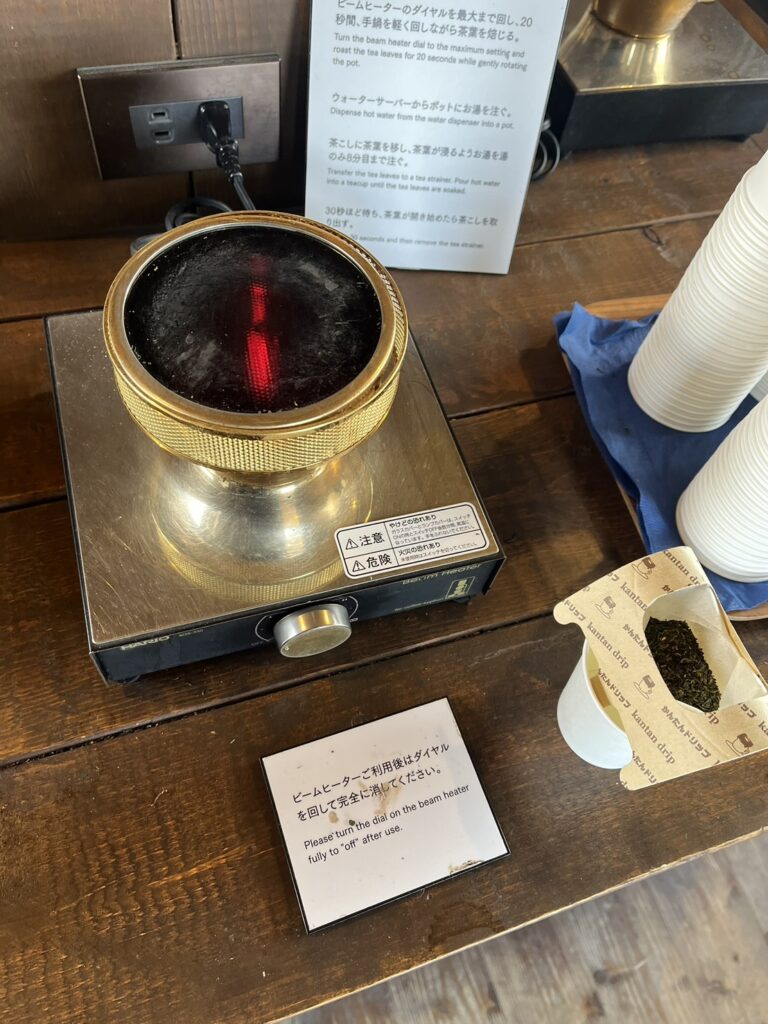 サイクリングで行くのはかなりしんどいですが、車でも上がれる島の上部には見晴らしのいいところがありそこに自分で選んだ茶葉を炒ってほうじ茶にできたりする場所があります。